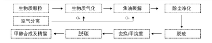 生物质气化燃烧耦合绿氢绿氧制甲醇