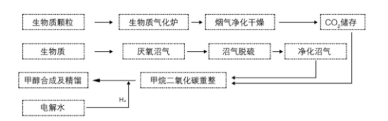 生物质气化燃烧+沼气干重整耦合绿氢制甲醇