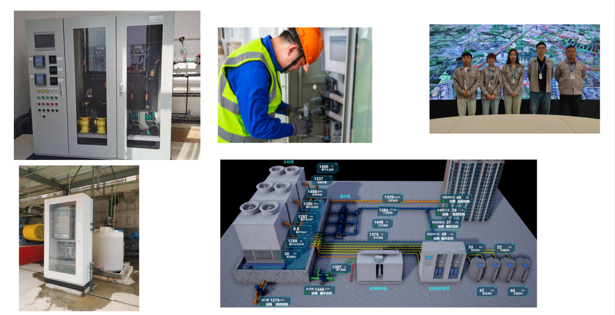 通过聚合物分析仪器,利用显浊比色法来确定聚羧酸类化合物的含量,从而确定系统中无磷药剂的浓度。通过核心控制器将药剂浓度数据,及水质多参数数据(ORP、电导、PH、余氯等)标定测准后反馈至自动控制模块,实现5套系统的自动加药。采用智慧平台实现远程控制和智能管理,对全厂的循环水系统实现综合评价和主动预警。